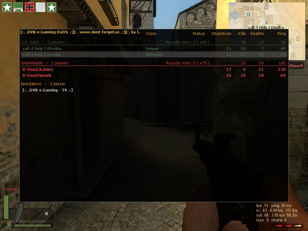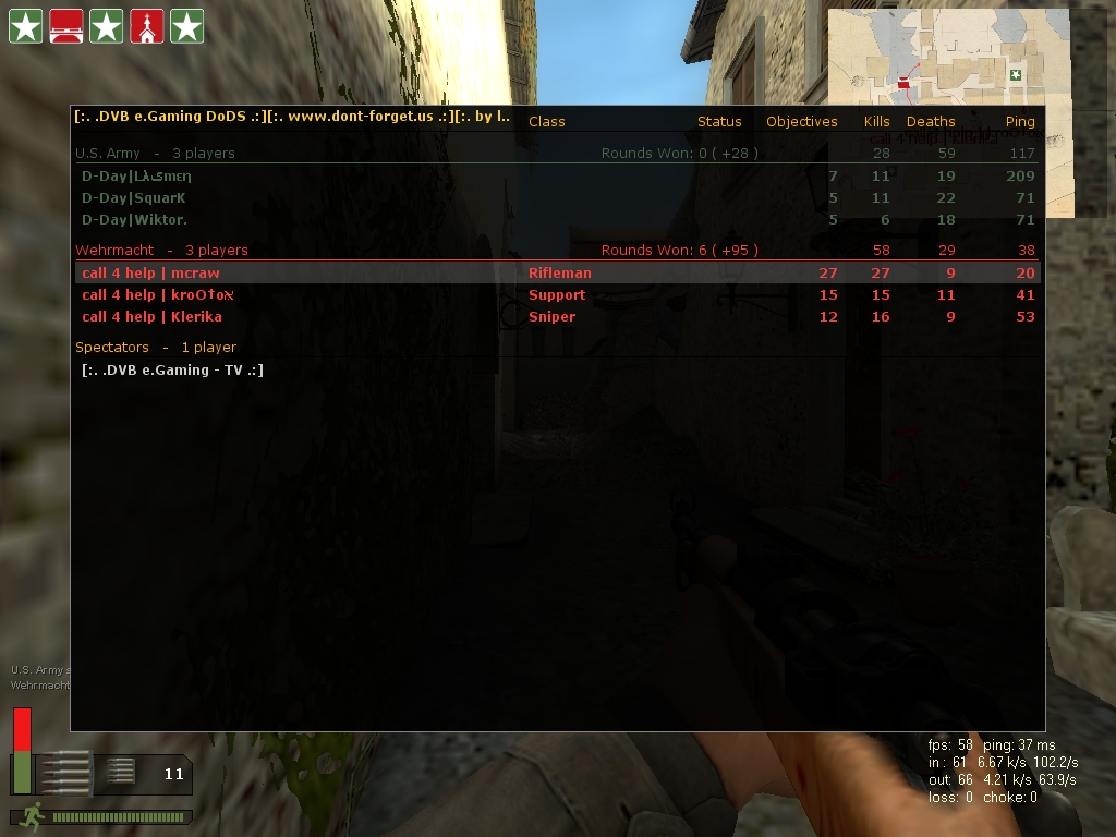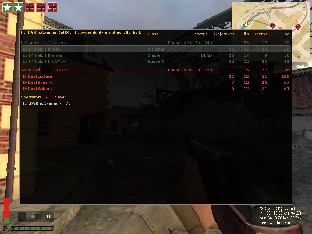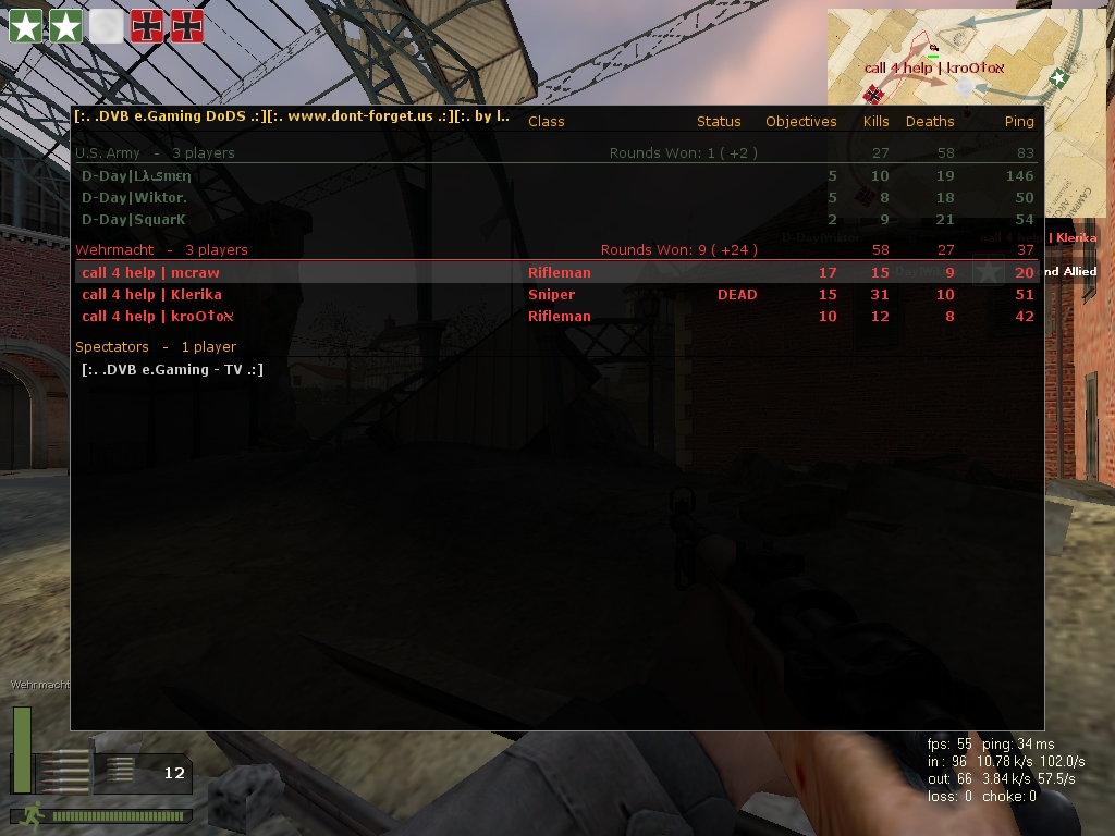 Leider hatte einer der Gegner arge Internet-Probleme. Und gerade durch sein laggen hat er uns das leben schwer gemacht. in der letzten runde ist einer der gegner geleavet, worauf krootox aus fairness auch den server verlassen hat.